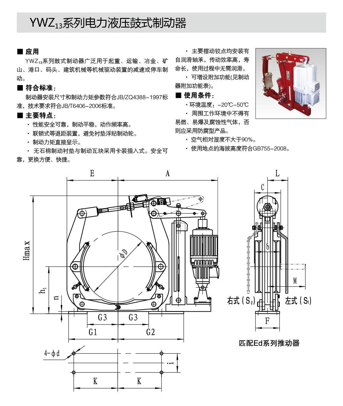 YW,YWZ13系列電力液壓鼓式制動器,廣泛應(yīng)用于有防爆要求的各種起重運輸、皮帶運輸、港口裝卸、冶金及建筑機械中各種機構(gòu)的減速和停車(維持)制動。